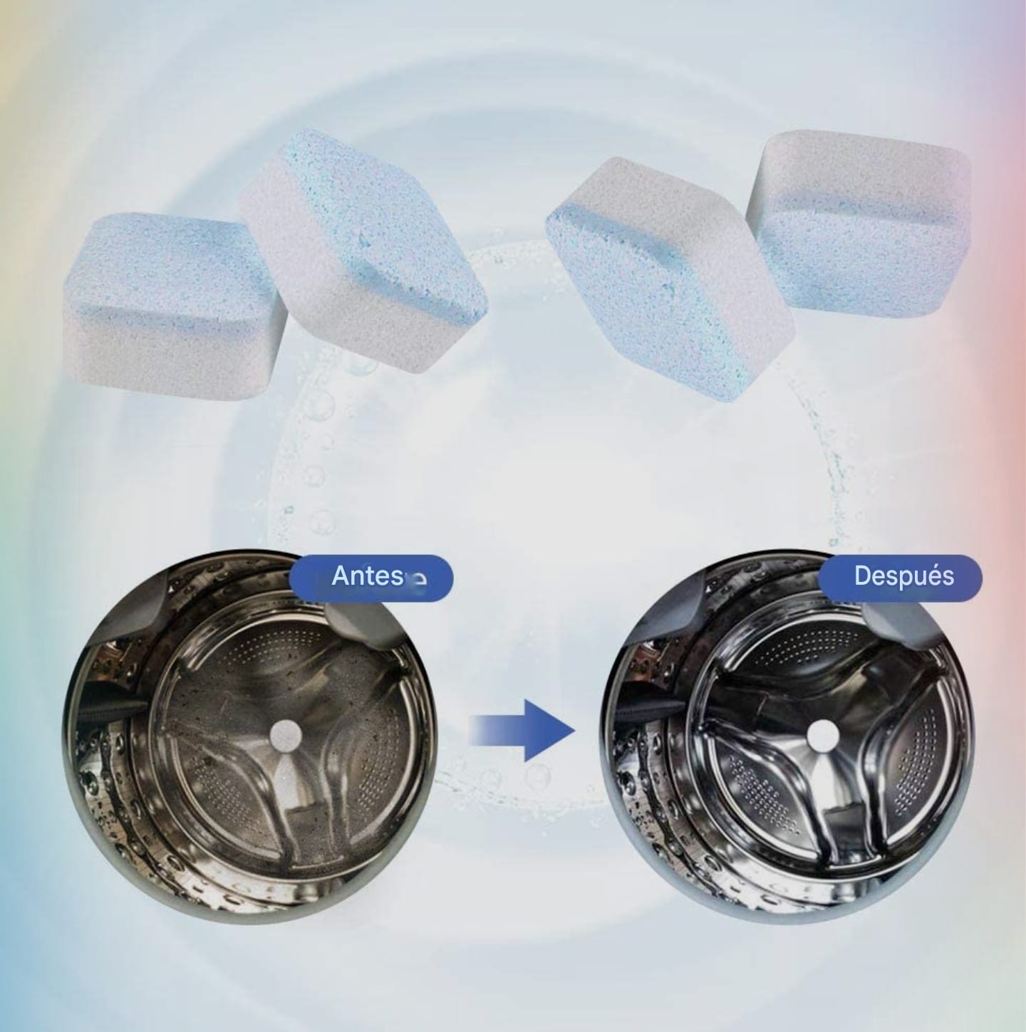 Estas tabletas efervescentes trabajan solas: eliminan la suciedad, el sarro y los olores desde el tambor hasta las partes internas, sin que tengas que tallar ni usar productos líquidos que generan residuos.